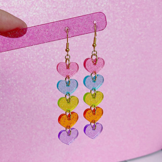 Jelly Heart Chain Earrings