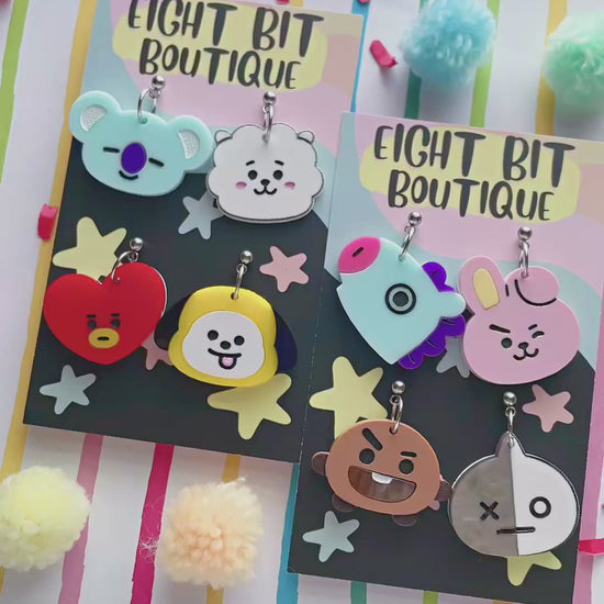 Handmade with love for fellow ARMY - these BT 21 inspired earrings are perfect for everyday wear or concert fits! Choose a matching pair of your bias, a mini mismatched set of your faves or grab the full mismatched set with 1 each to rep all the members at your leisure <3